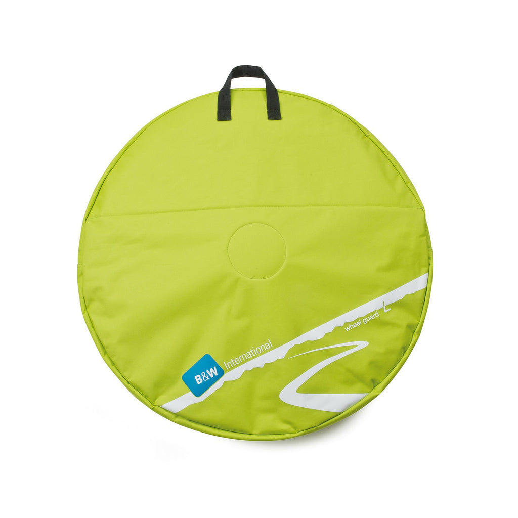 Inside the B&W wheel guard L, single wheels up to 29” are handily and safely stored. This rugged covering is made of highly tear-resistant nylon fabric, which fits wheels in perfectly. The lightweight material and practical carry handles make the wheel guard extremely easy to transport and stow safely and securely on our bike. Cases and bags.