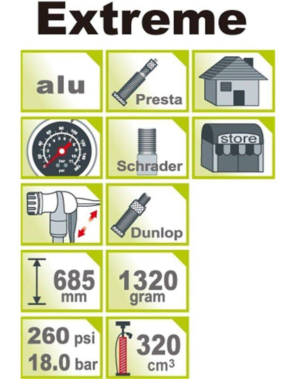 Telescoping design for faster and easier inflating Presta / Schrader / Dunlop Up to 120psi / 8.2bar Product Dimensions : 29 x 9 x 3.5cm Weight: 0.198kg Color: Silver, Black Material:...