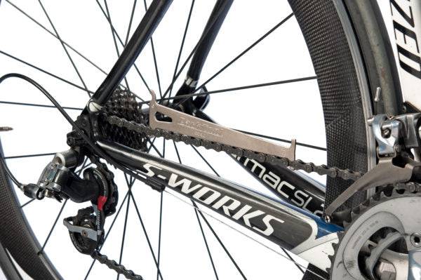 The CC-4 is a drop-in style gauge that measures bicycle chain wear. The laser-cut CC-4 accurately measures a long section of chain and strategically comes in contact with the chain...