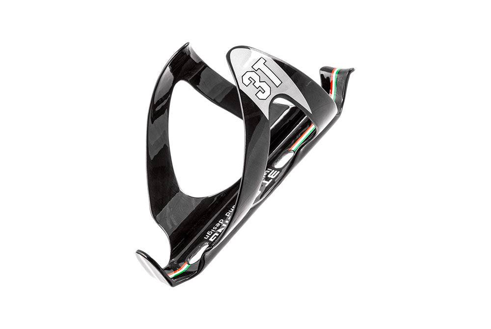 3T Bottle Cage is a lightweight, all-carbon-fibre open cage for standard-sized bidons. Finish UD Gloss Black, with 3T logo and Italian tricolour centre-stripe detail - Truly thrilling and featherlight.