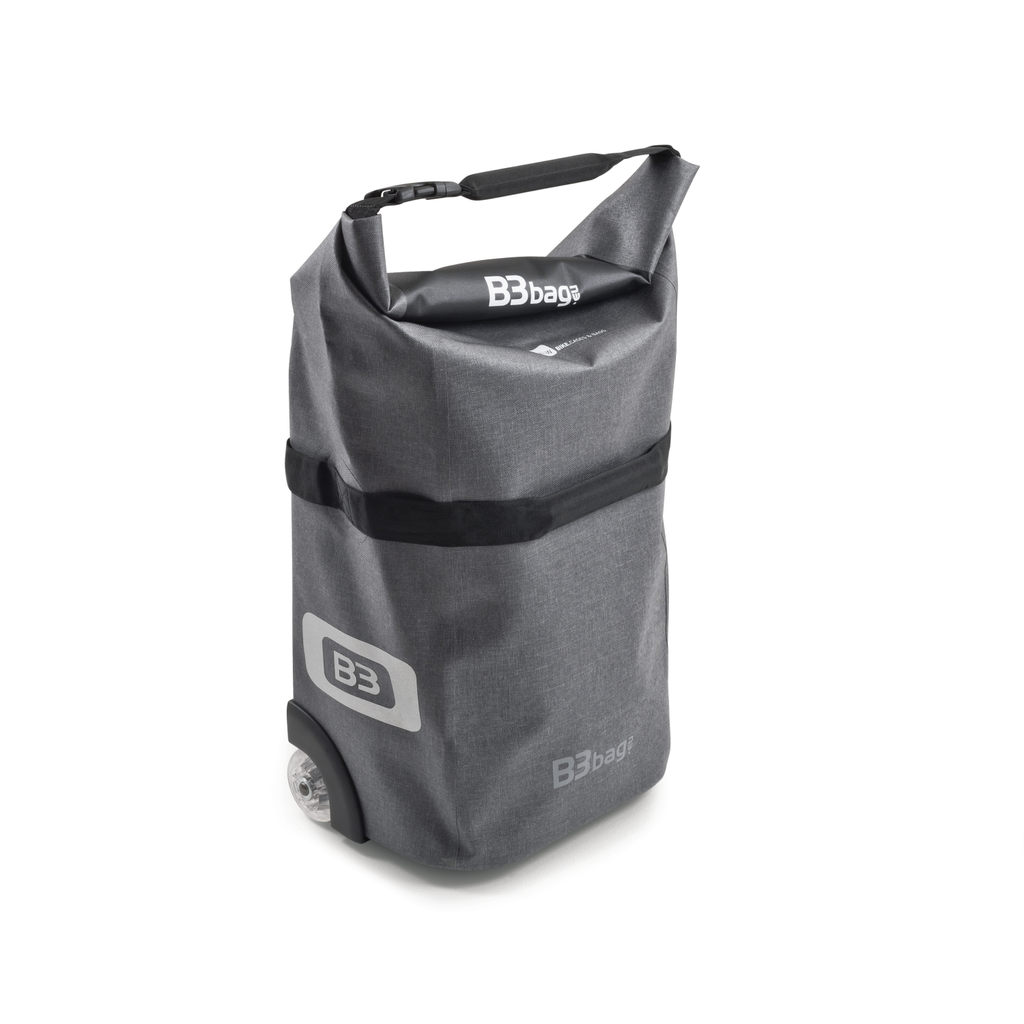 Our B3 bag and bicycles - this is an absolute dream team. Thanks to its capacity of 35 liters - even up to 48 liters when open - the spacious bag fits everything you need for a long trip or competition. It is also the ideal everyday helper: even heavy things can be easily stowed away if you shop by bike. Thanks to the trolley function and its smooth-running wheels, the B3 bag is easily transported even without a wheel and when fully loaded.