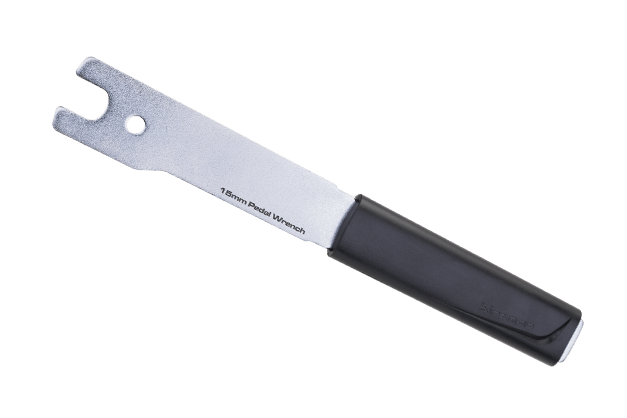 The 15mm Pedal Wrench is the essential tool to have on hand for pedal assembly and removal. The streamlined profile fits easily between the pedal and crank arm, whereas the comfortable TPR handle enables great leverage to remove or fit the pedals.