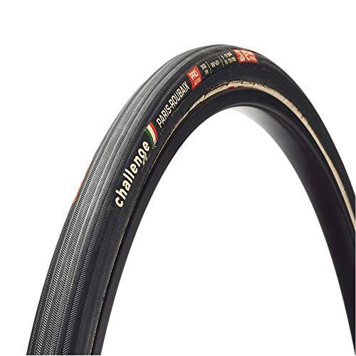 World-class, fast rolling, and cornering, comfortable, maximum control, higher volume, all-condition tyre for rough or cobbled roads. Having supplied multiple Paris-Roubaix winners and cyclocross world champions over the years Challenge tyres are ready to stand up to rough and unforgiving terrain. The Challenge Handmade Paris Roubaix Pro Road Tyre is no exception with many of the same superb features that have made their tubular tyres the 'go-to' for Roubaix and other cobbled races. This tyre version has a 320 TPI(threads per inch). This high TPI count makes the tyre super-smooth rolling and soft, allowing it to easily glide over rough terrain. Durability is ensured by the combination of the SuperPoly bead casing and PPS2 puncture protection. These two features act to help prevent punctures, gashes, and rips while you traverse adverse terrain. This tyre's 27mm width is ideal for conquering graveled, paved, or cobbled terrain, as the wider footprint of the tyre acts to smooth out bumps and vibrations. Polyester Pro Casing-Polyester is the least expensive handmade casing. It is a synthetic that is quite strong and impervious to water but not as soft and supple as either cotton or silk. It is far softer and stronger than nylon. We use Polyester or SuperPoly (higher thread count polyester) to make our workhorse, more cost-efficient Pro level tires. Rolling Resistance-The benefit of super supple attributes – treads, casings - is to make Challenge Handmade Tyres optimally deform over road imperfections – greatly reducing rolling resistance. Puncture Protection System (PPS)-The Puncture Protection System is a special fabric placed between a tire’s tread and casing to increase resistance to punctures. Some Tyres designed for use on rough roads, cobbles, and gravel receive PPS2, an additional layer of PPS between the casing and the inner tube.