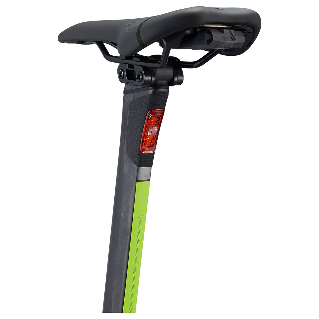 Seamless integration of safety and aero for your MERIDA REACTO. The MERIDA REACTO SP is an easy-to-fit and aerodynamic tail light that integrates into the MERIDA REACTO Seatpost. It is powered by a single AAA battery (included) and fits all REACTO posts from CF2/CF4 frames from the model year 2018 onwards.
