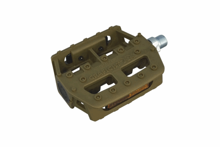 The GRAFIGHT-X was one of the earliest pedals on the market to use Synthetic Fiberglass Resin- which we proudly proclaimed to be nearly half of the weight of an aluminum alloy pedal body while being twice as rigid and strong. While originally developed for BMX, we have found this to be an excellent pedal for e-bikes, and are making the pedal in 5 colors (White, Black, Red, Blue, and Khaki).