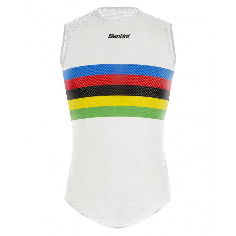 Sleeveless base layer with a UCI World Championships Rainbow Stripes design. Breathable micromesh. A perfect complement to any UCI kit.