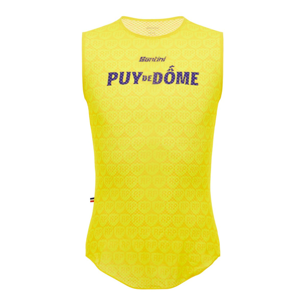 Sleeveless base layer with a special design dedicated to the iconic climb of the Puy de Dome and the unique setting of the climb to the top of the dormant volcano. Enjoy the supreme comfort of this sleeveless baselayer engineered for a tight, elastic fit. The elongated cut provides maximum coverage and avoids a bulky feel when worn under bib shorts. A perfect match for your Puy de Dome kit.