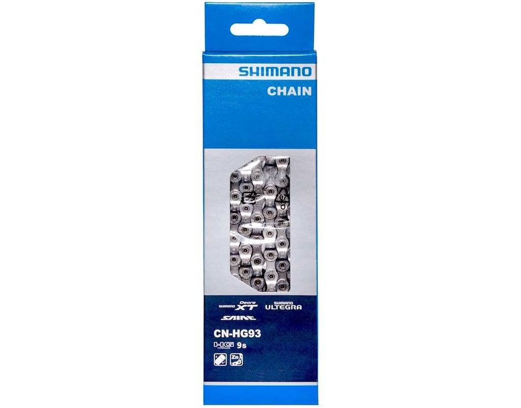 The Shimano CN-HG93 9-speed chain is super narrow, manufactured with high precision, and, thanks to Hyperglide (HG) technology, glides smoothly from one tooth to the other. Long-lasting performance is guaranteed by the galvanizing of the outer link, which makes the chain less sensitive to corrosion. The version with 138 links is suitable for use on e-bikes.