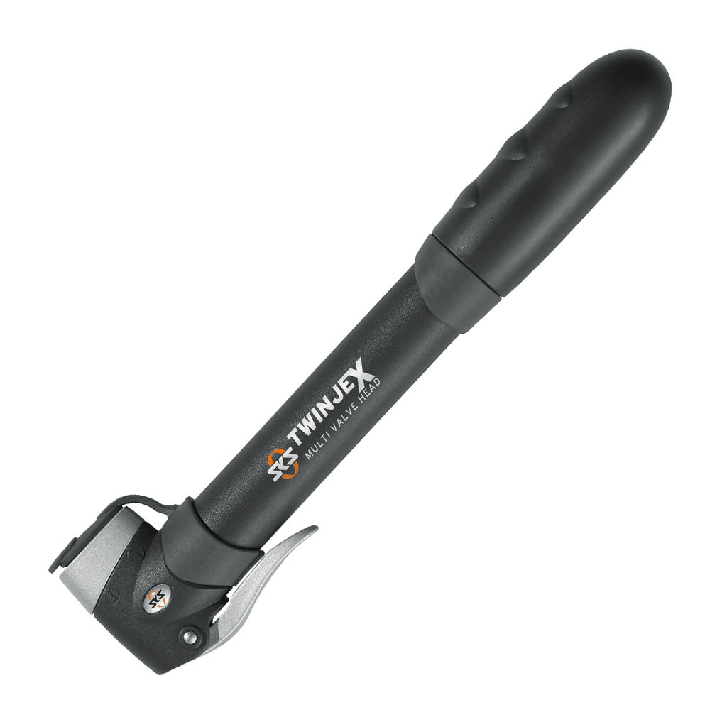 The SKS TWINJEX mini pump with a universal MULTI VALVE valve connection is the ideal companion on bike tours – thanks to its high volume per stroke. This bike pump scores highly not only because of the optimal ergonomics and rubberized grip areas on the handles.
