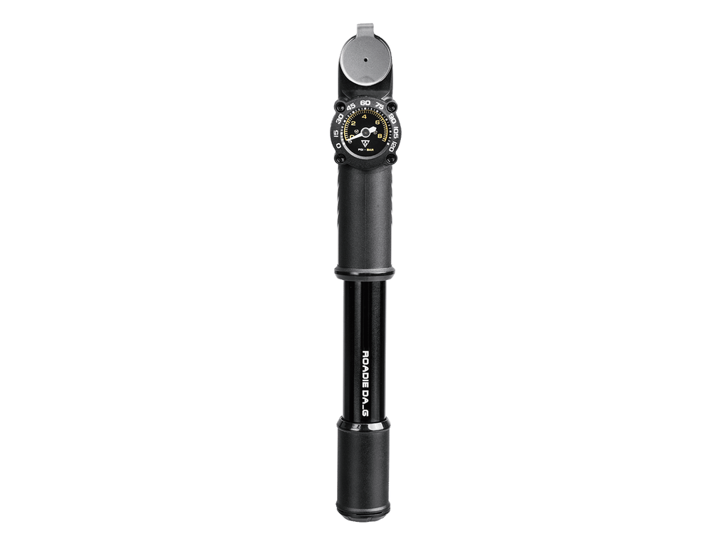 The most compact, lightweight Dual Action pump with a gauge that road riders can fit anywhere. Large integrated 1-1/8” diameter easy-to-read analog gauge always provides the perfect inflation. Dual-Action (DA) doubles volume with each stroke and inflates tires to 120 psi / 8 bar. The integrated dust cap keeps the pump head clean, and the thumb lock lever ensures an air-tight seal.