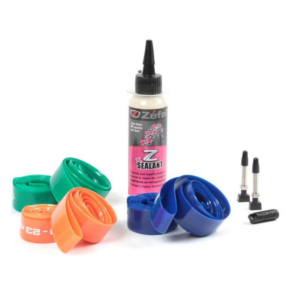The Tubeless Kit contains everything that is needed to convert rims and wheels (TLR or Tubeless-ready or UST compatible) into tubeless. Tubeless rim tape (available in three sizes:26", 27.5", and 29") has been designed to ensure the tire is sealed to and held on the rim.